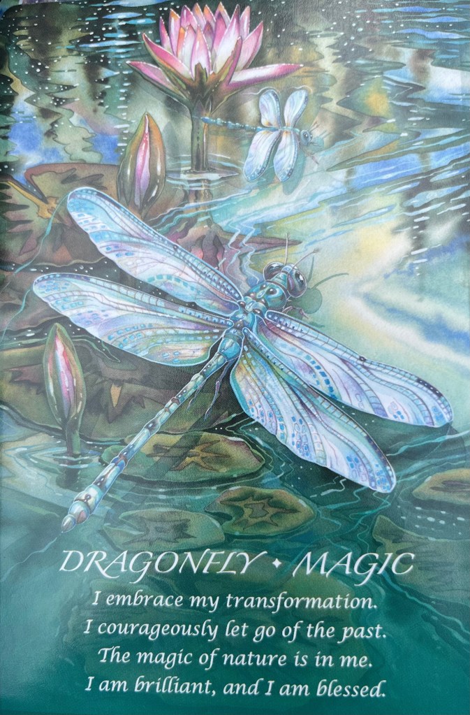 Now, let’s go back to August of 2025 and why I have an image of a dragonfly with this post (image is from: Spirit of the Animals Oracle deck by Jody Bergsma). This last August, Jamie and I got our first tattoos together. I chose an image of a dragonfly to represent my spiritual transformation. It is on my right shoulder blade-it literally has my back— and everyday reminds me of how much I have grown and healed in this short time of two years. Also this past summer, I opted to work at a local metaphysical shop, Divine Time, to continue my learning and surround myself with people like me! I learned so much while working here, and am still on staff for the store should they need me! Maybe if you stop on in, you will see me!